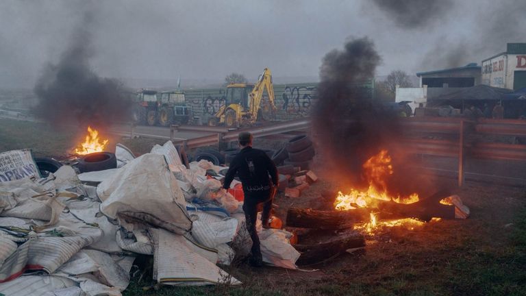 Los ganaderos vuelven a cortar con tractores la autovía A-52 contra el acuerdo de Mercosur