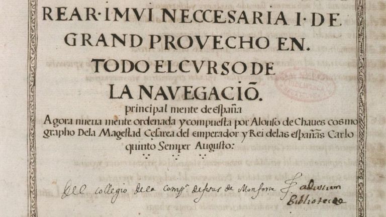 El Espejo de navegantes es una obra escrita por el piloto y cosmógrafo Alonso de Chaves entre 1530 y 1540. Era un documento valioso para el Gobierno por su interés estratégico y durante mucho tiempo estuvo custodiado por los Jesuitas en Monforte. Se supone que llegaría a la ciudad gallega porque, al parecer, acabó siendo propiedad del cardenal Rodrigo de Castro, fundador del colegio monfortino y arzobispo de Sevilla. El Espejo de navegantes recoge información clave sobre rutas marítimas hacia América desde España y se prohibió su publicación y se decretó el secreto de Estado para evitar que otras potencias accedieran esas rutas. Su autor, Alonso de Chaves, trabajó para la Casa de Contratación de Sevilla y participó en la elaboración del Padrón Real, el mapa oficial de navegación americana. El manuscrito está ahora en la biblioteca de la Real Academia de la Historia.