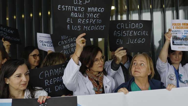 La huelga de médicos ha provocado la anulación de miles de consultas, cirugías retrasadas y retrasos o anulaciones de pruebas hospitalarias. «O meu avó está ingresado no HULA por unha obstrución intestinal desde a semana pasada, sen que lle fixeran ningunha proba nin se saiba como vai evolucionando, porque non hai médicos», dice una usuaria. Han sido cinco días de huelga y se tardará tiempo en reestructurar el sistema de citas. Según la Consellería de Sanidade hay que reprogramar un 60 %. Los facultativos piden un estatuto propio para su colectivo y que se ponga fin a las guardias obligatorias de 24 horas trabajadas además de la jornada ordinaria. Hasta junio está prevista una semana de movilizaciones cada mes.